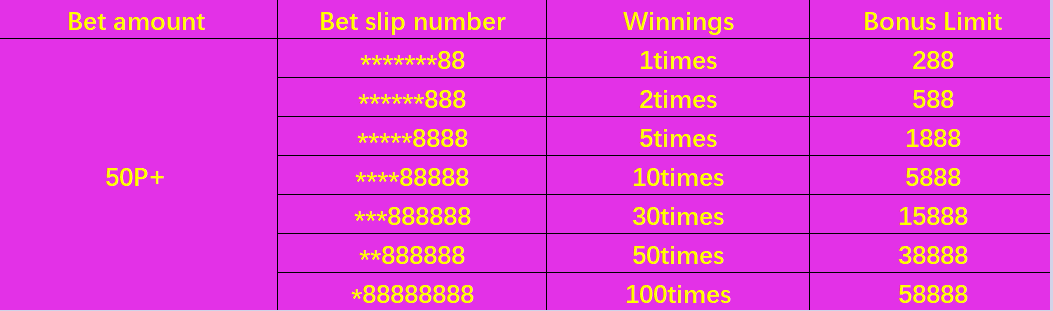 From now on, new and old members of 234WIN.PH can participate this event. As long as you generate the following lucky bet numbers in the [Live Game], you can get lucky bonuses, up to 100 times the bonus